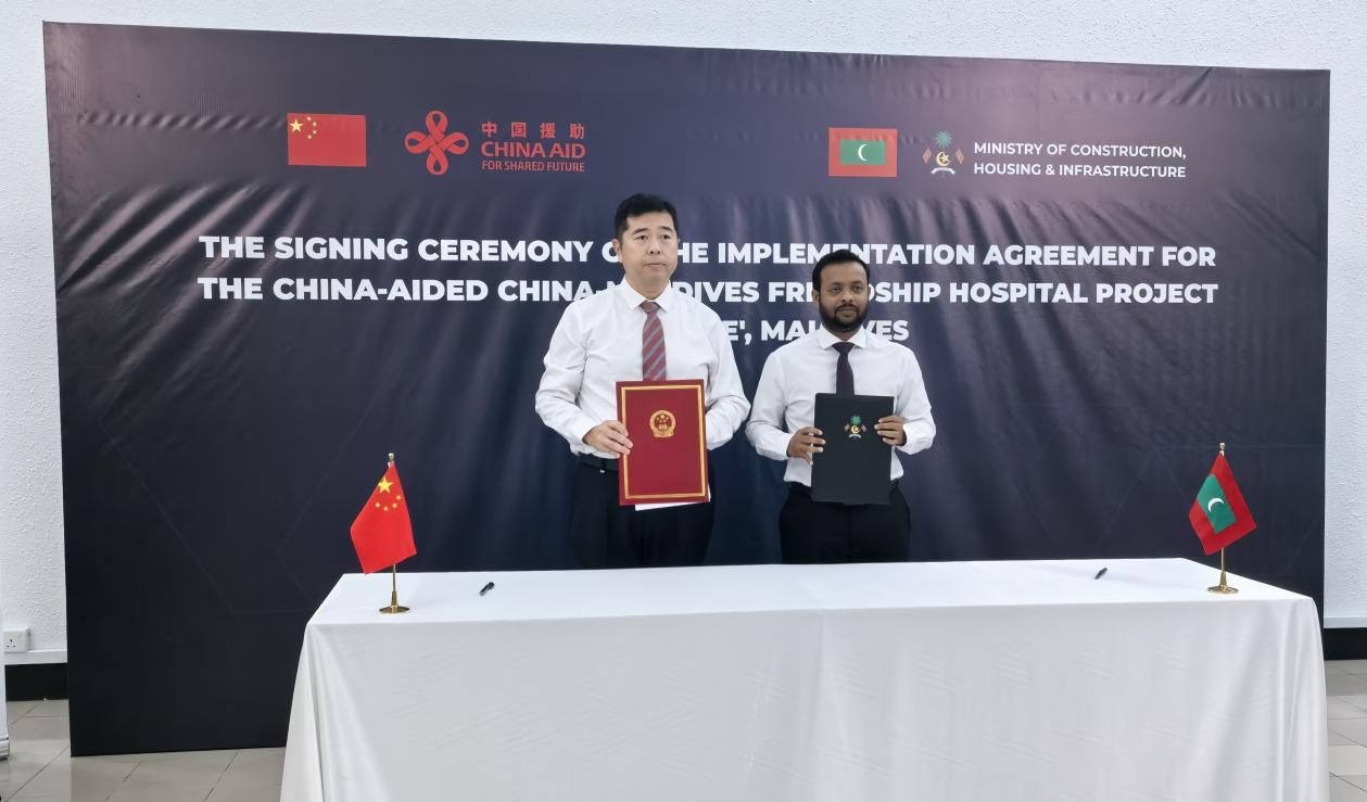 2026年1月19日,中国驻马尔代夫使馆参赞张旭与马尔代夫建设、住房和基础设施部部长穆特塔利布共同签...