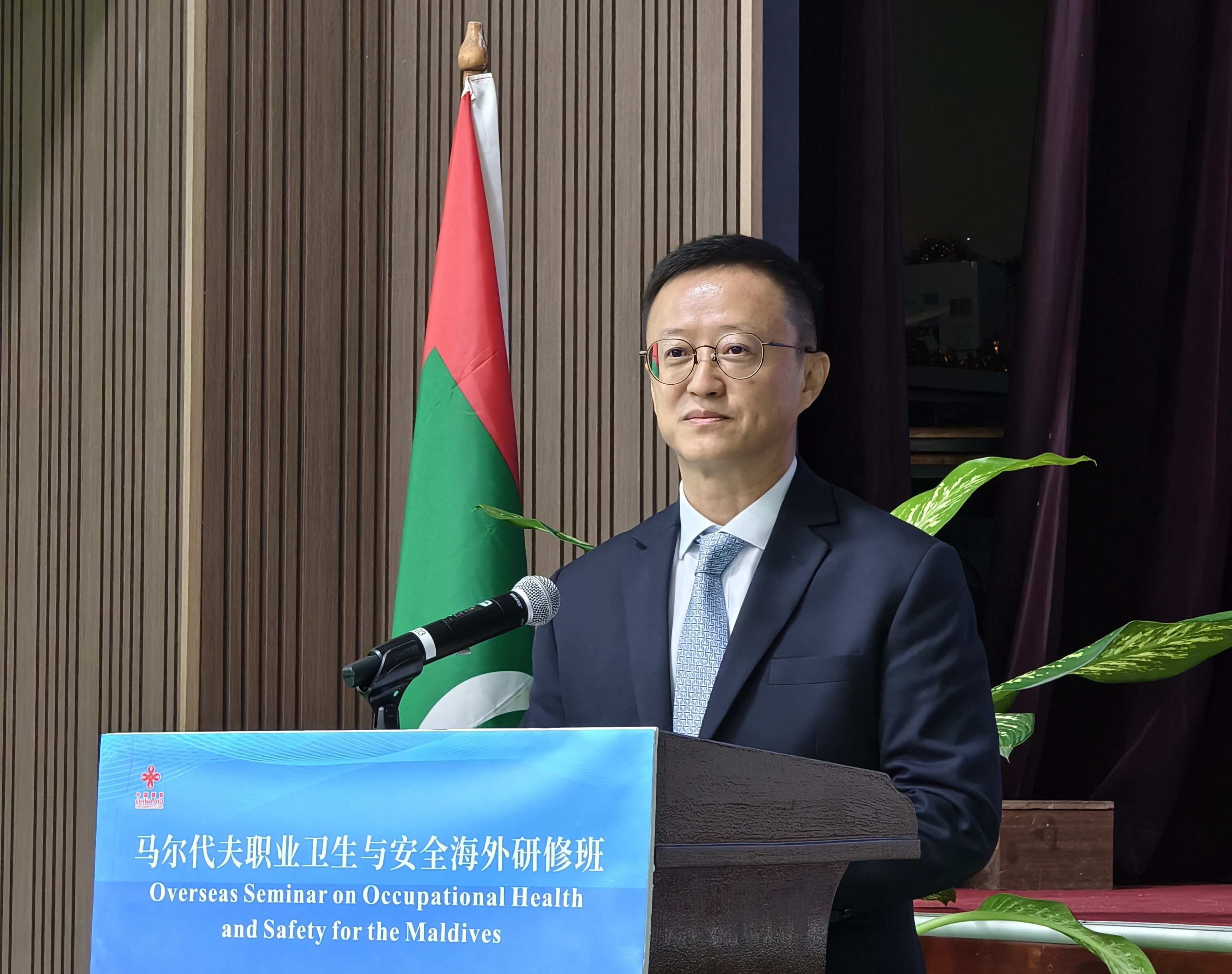 10月15日,孔宪华大使出席马尔代夫职业卫生与安全海外研修班开班仪式并致辞,马尔代夫卫生部国务部长卡迪贾、我馆张旭参赞参加。