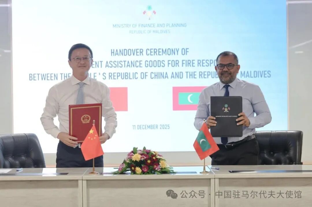 12月11日,驻马尔代夫大使孔宪华与马财政和计划部长扎米尔共同出席援马火灾紧急物资交接仪式,并签署交...