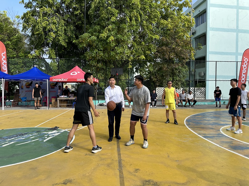 12月30日,驻马尔代夫使馆张旭参赞出席在马中资企业“迈向2026篮球友谊赛”,并为比赛开球。此次篮...