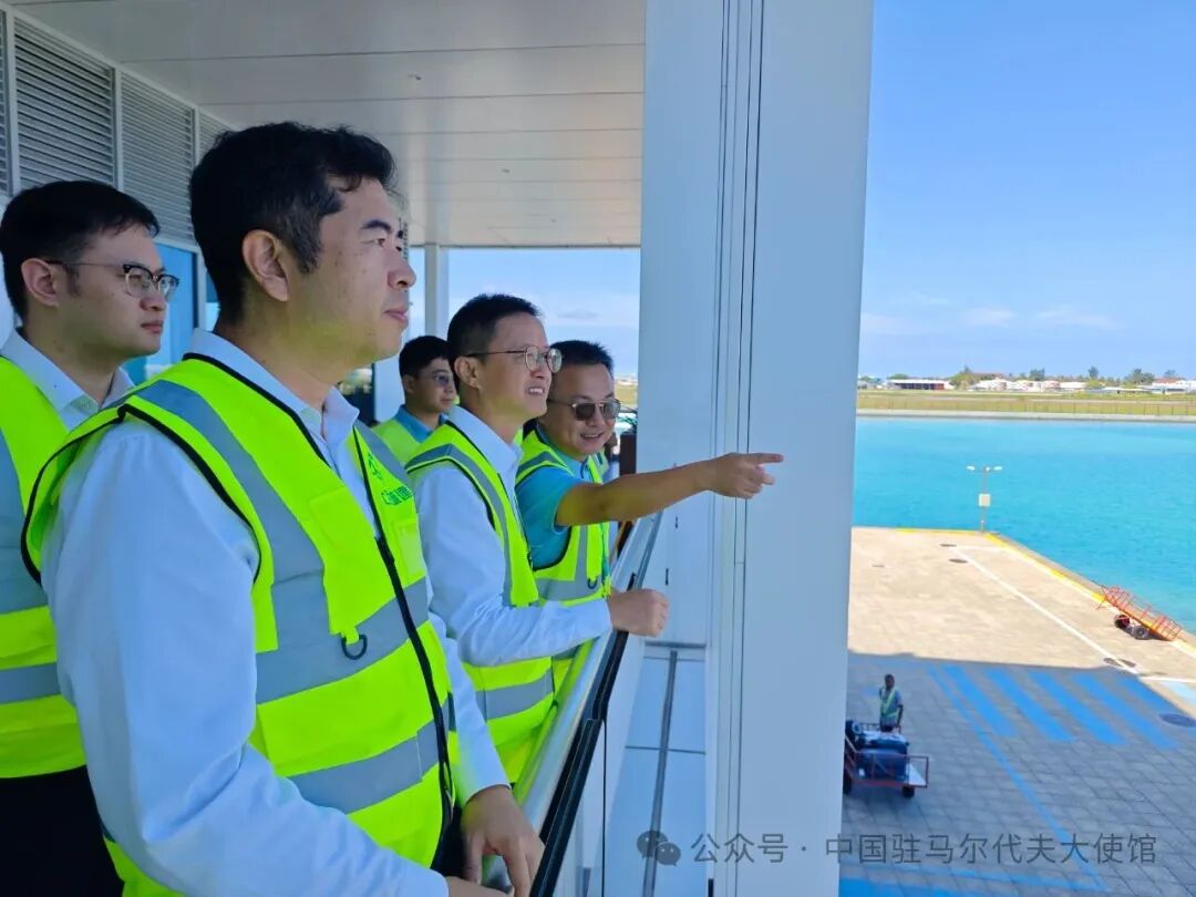 12月3日,驻马尔代夫大使孔宪华赴维拉纳国际机场考察北京城建在马项目,我馆张旭参赞陪同。